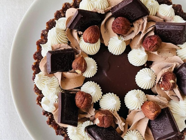 粉も砂糖も油も使わず、48℃以上の加熱をせずに植物の酵素を活かしたロースイーツです(※この商品では寒天を使用しております)。安心の天然素材を集め、栄養価が高く身体に優しい季節のスイーツを作りました。 有機デーツと有機生クルミ・アーモンド、有機ローカカオパウダーの焼かないタルト生地に、有機デーツ入りガナッシュクリームを重ね、有機生カシューナッツと有機メープルシロップ、有機ココナツオイルを使用したカシューナッツホイップチョコクリームとバニラクリームをデコレーションし、自家製ローチョコレートと有機ヘーゼルナッツを飾りました。 お好きなタイミングで召し上がれて色々な味を一度に楽しめるローケーキ。 抗酸化作用のある良質な脂質やタンパク質、不足しがちな食物繊維やビタミンミネラルを補うことができます。 疲れた身体にもエネルギーを補給しながら腸活、抗酸化作用も期待でき、健康や肌が気になる方、身体作りをしている方に特におすすめのデザートです。 冷凍便となりますので、冷蔵庫で4時間程解凍し、なるべく早くお召し上がり下さい。室温でクリームが溶けやすいため冷たい状態でお召し上がりください。 【商品名】ローチョコレートタルト 【内容】15cmサイズ 【材料】 有機生カシューナッツ(ベトナム産)、有機デーツ、有機ココナッツオイル、有機生クルミ、有機メープルシロップ、有機ローカカオパウダー、有機生アーモンド、有機ローカカオバター、有機生ヘーゼルナッツ、麹甘酒、有機ココナッツクリーム、有機レモン、寒天、食塩、バニラビーンズ/レシチン(大豆由来) (一部にカシューナッツ・くるみ・アーモンド・大豆を含む) 【栄養成分表示】15cm1台当たり(推定値) 熱量1952kcal たんぱく質36.4g 脂質154.5g 炭水化物120.2g(糖質96.2g、食物繊維4g) 食塩相当量0.7g 鉄11.1mg、カルシウム254mg 【賞味期限】お届けから約2週間 【配送方法】順次発送いたします。 ご希望のお届け日時がございましたらお知らせ下さい(午前中、14-16、16-18、18-20、19-21) ※クロネコクール冷凍便の発送となります。 受け取り後は冷凍保管し、解凍後はお早めにお召し上がりください。