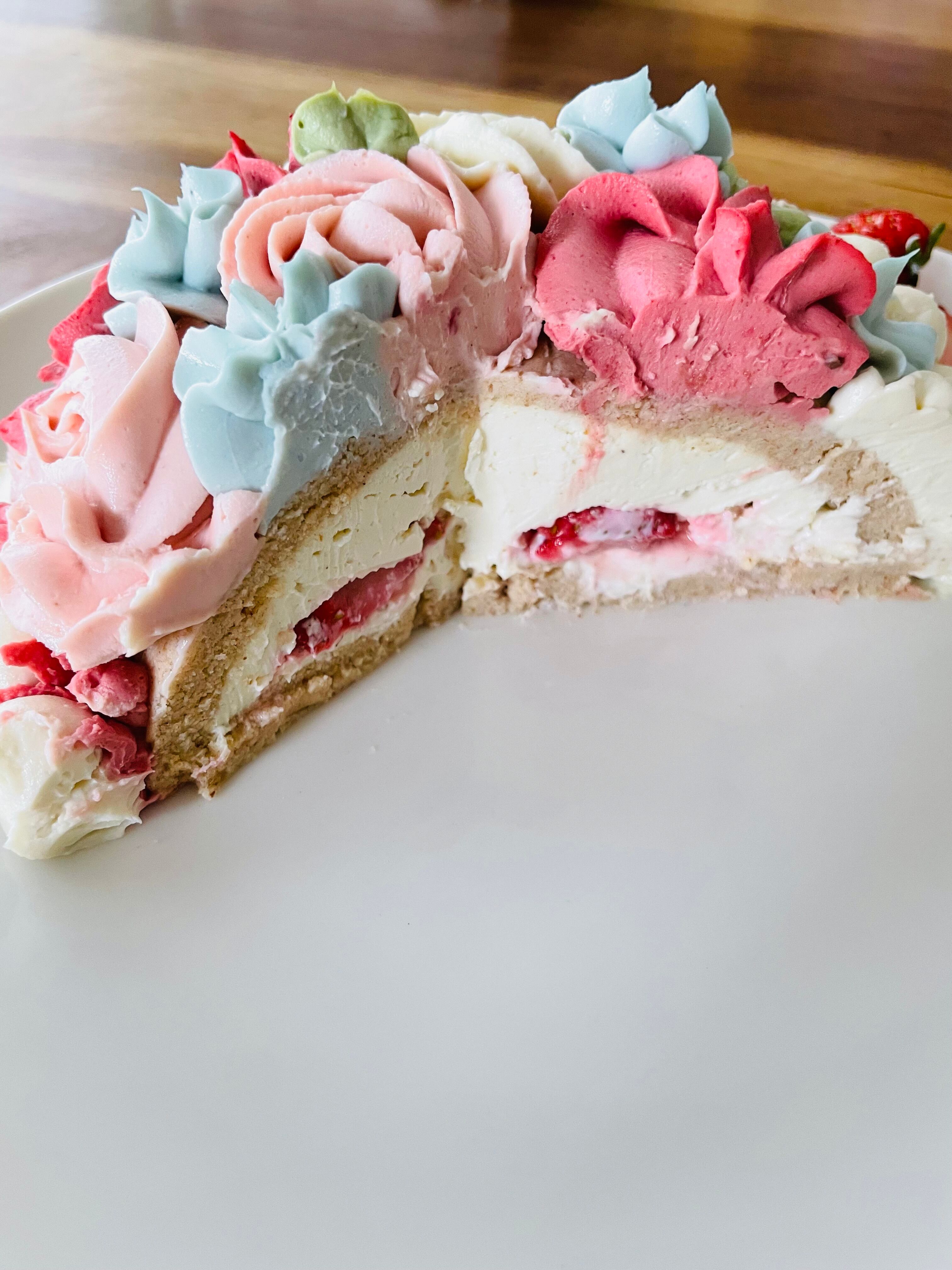 誕生日等のお祝いやパーティー、贈り物にもおすすめの華やかなホールサイズのローデコレーションケーキ(ほぼオーガニックの栄養価の高い美味しさにもこだわった植物性素材を贅沢に使用。小麦米粉砂糖不使用の焼かないケーキ。甘さ控えめ軽やかで心地よい食べ応えと豪華な見た目でお祝いにも大変お喜びいただいています。もちろんご自身へのご褒美にもどうぞ、お楽しみ下さい!