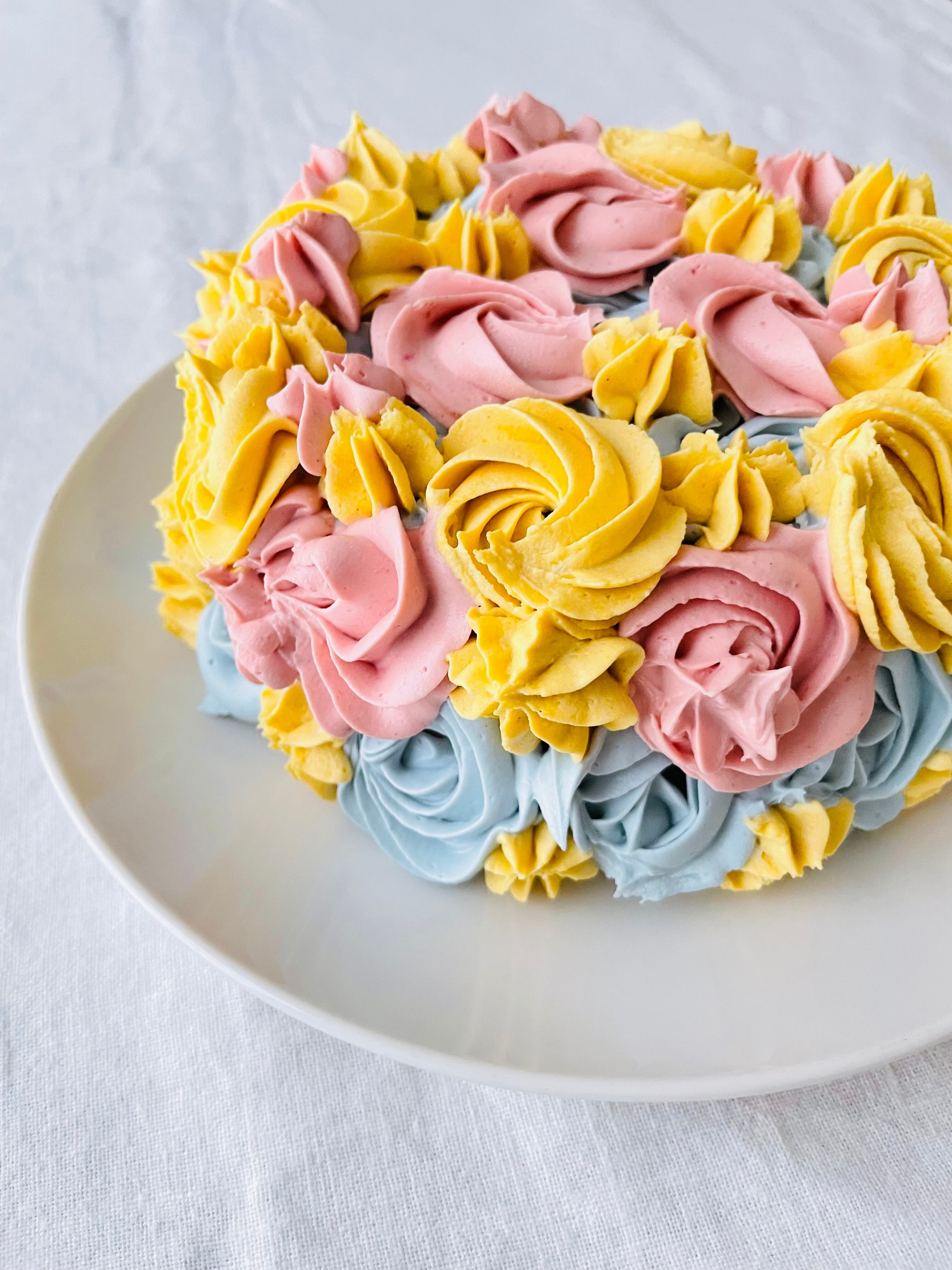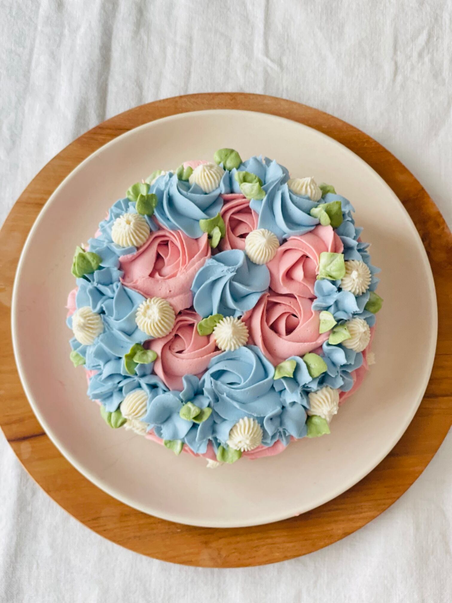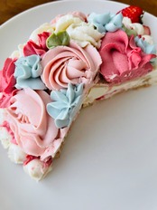 トッピングにはビーツ、いちご、抹茶、リナブルー入りのレモンカシューローホイップクリームをお花のように絞りました。